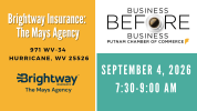 The next Business Before Business sponsored by the Putnam County Chamber of Commerce will be hosted by Brightway Insurance on Friday, September 4. Business Before Business provides an early morning social, but professional venue for business people to ...