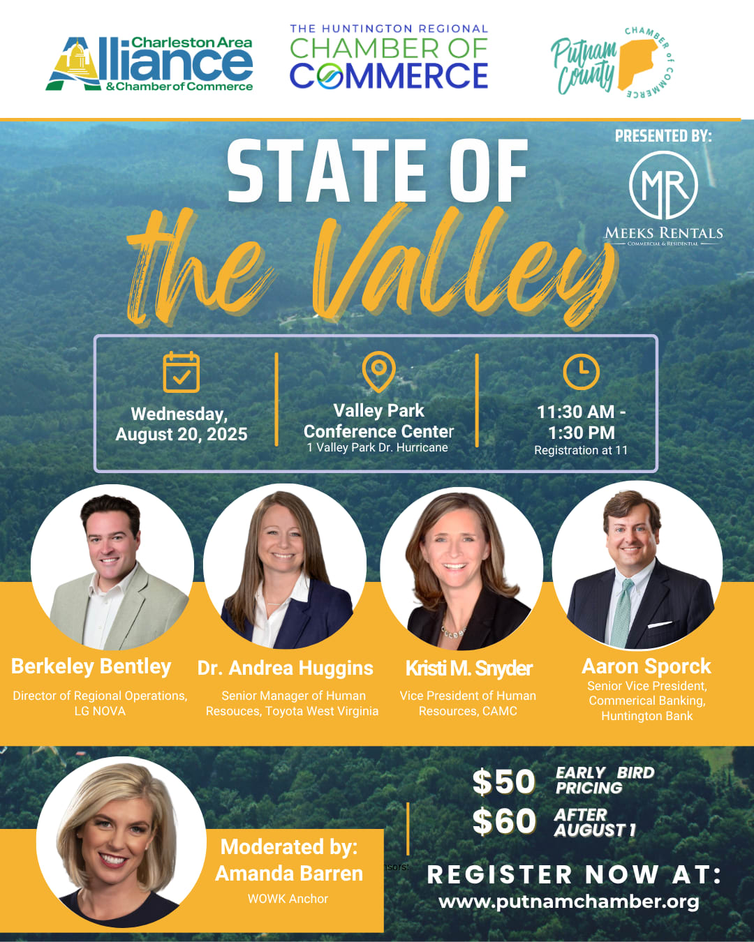 The State of the Valley presented by Meeks Rentals & Leasing, enters its third year as an exciting event, collaboratively hosted by the Charleston Regional, Huntington Regional, and Putnam County Chambers of Commerce. This year’s summit will focus on a topic that is top of mind for employers across West Virginia: workforce preparedness.