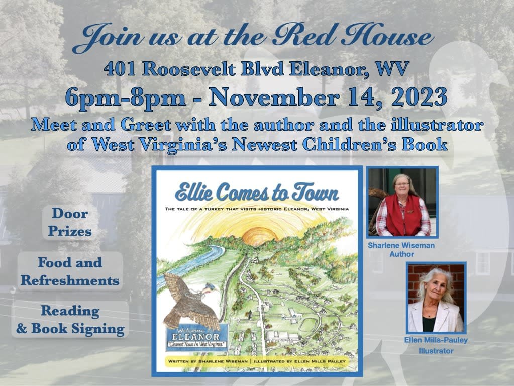 We're celebrating Ellie with a party and a launch of her new book that documents the turkey's trip into our town AND a meet-and-greet with the author and the illustrator. Please join us at The Red House in Eleanor for this special event! There will be food and refreshments, door prizes, and a reading of the book along with a book signing.
