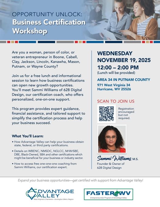 If you’ve thought about certifying your business as a veteran-owned, woman-owned or minority-owned, check out this free resource at Area 34 on November 19! Lunch will be provided.Images