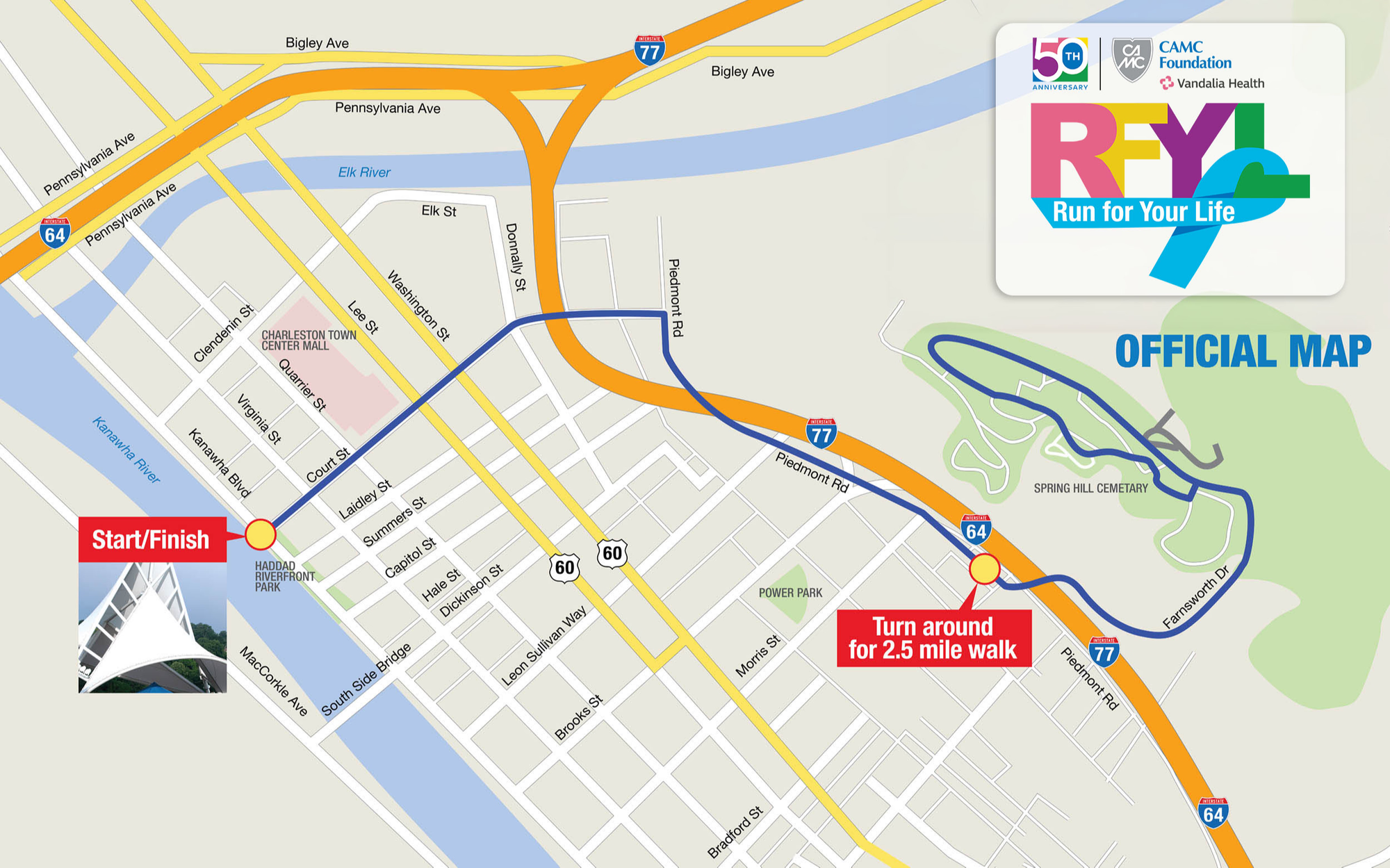 Register/Sponsor/Donate at https://runsignup.com/Race/WV/Charleston/CAMCFoundationRunForYourLife