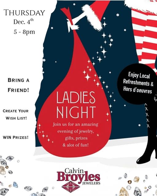It's Ladies Night! Join us for an evening of fun & lots of sparkle! ✨ The Broyles family invites you and your friends to enjoy shopping, delicious food, drinks, and exciting prizes at our South Charleston, and Teays Valley locations. Be among the first to preview our new Christmas collections and earn an additional entry to WIN a Louis Vuitton bag or a $2,500 jewelry shopping spree! 🎁 Happy Holidays from our family to yours! 🎄Images