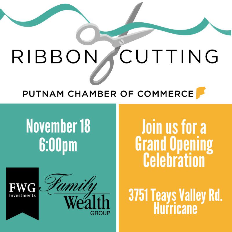 You are invited to the Grand Opening Celebration & Ribbon Cutting of Family Wealth Group's Hurricane location. Join us for a cookout and meet the Family Wealth Group family! They will be collecting donations for Mountaineer Food Bank, so please plan to bring canned goods or monetary donations. You'll also have a chance to register for a chance to win a Yeti cooler!