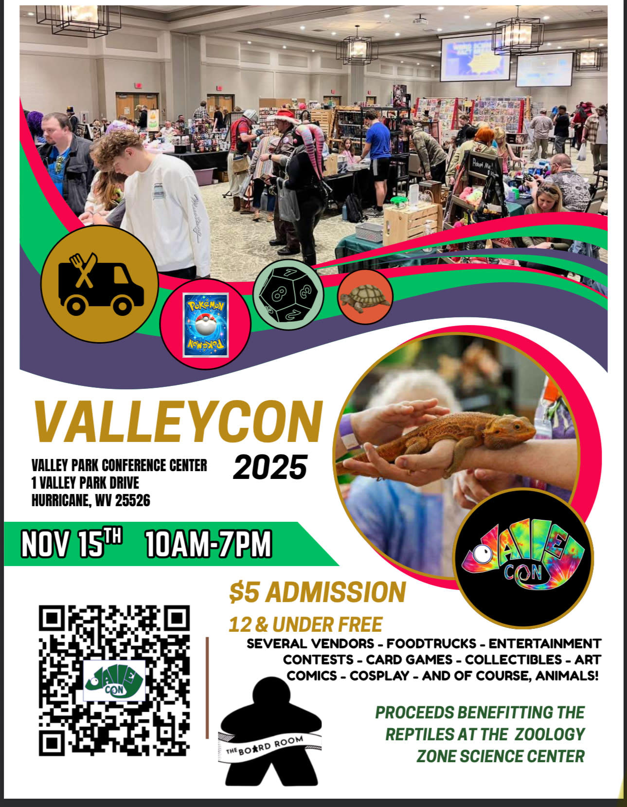 Vendors, food trucks, card games, collectibles, comics, and so much more! Proceeds of ValleyCon will benefit the animals of The Zoology Zone. $5 admission/kids 12 and under are FREE!Images