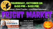Our last Night Market of the year - Fright Market! Join us for all the Halloween fun! Trick-or-Treat for the kids, kids haunted house, costume contest for all ages, kids carnival games, vendors, food trucks, love entertainment, and more!